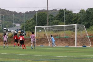 立ち上がりから球際が激しい攻防になったが、本校が攻める時間帯が多くチャンスも多くあった。均衡を破ったのは前半22分、しいなが抜け出し、遠目からのシュートはキーパーの手をかすめ、ゴールに吸い込まれた。待望の先制点は本校に生まれた。ピンチも2回ほどあったが、キーパーのファインセーブで凌ぐ。それよりもチャンスを決めきれないことが後々響くことになる。ただ前半は1対0で折り返す。後半に入り、豊川が交代カードを切る。本校はそのままの形で入るも、後半5分、混戦から押し込まれ、同点。後半25分にもコーナーキックから失点。1対2と逆転される。時間も刻々と進む中、後半33分、ゴール前のフリーキックでしいなが蹴ったボールは綺麗な弧を描いてゴールに吸い込まれた。見事なゴールに歓喜の輪ができたが、まだ同点と攻撃の手を緩めず攻めるが。そのまま延長戦に突入。前後半でも決着がつかず、PK戦に。昨年と全く同じ展開も勝利を信じて疑わない。それでも勝負は無情にも豊川に軍配が上がった。出場した選手、サブのメンバー、サポートのメンバー、スタッフも最後まで全力を出し切った。結果はすべて監督の責任である。勝たせてあげられず、申し訳なく思う。