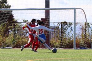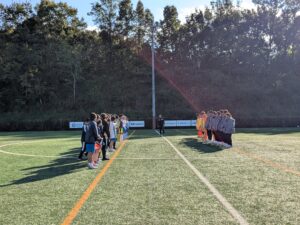 11月1日(土)は中国江蘇省U16女子チームと国際交流マッチを行った。U16とカテゴリーは下のチームであったが、本校ABと対戦し、トータル0-2で敗れた。フィジカルが強く、サッカー戦術もしっかりと構築されていた。にかとそっくり選手がいたり、中国語で話そうとチャレンジする場面は見られたが、やはり本校はシャイな選手が多いようで、積極的に関われていないことが気になった。