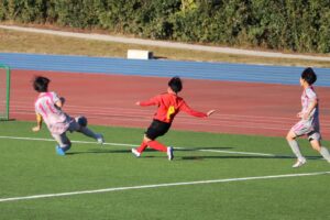 11月30日(日)の午後に、U18リーグ東海最終戦VS豊川高校が豊川高校Gで行われた。1週間前に行われる予定だったものが、豊川高校のインフルエンザの流行で学級閉鎖、学年閉鎖があり、特別対応でこの日の日程に変わった。皮肉にもこの日はキャプテンしいながインフルエンザに感染したため、欠場となったが、集団感染ということではないため、試合は行われた。前半から主導権を握り、攻守の切り替えも速く、一方的な感じすらあったゲーム展開だったが、ゴールが奪えない。嫌な予感が脳裏をよぎったが、案の定、中盤のパスミスからショートカウンターを受け、失点。その後も攻撃を続けるもやはりゴールは遠い。前半38分、ようやくかづきのミドルシュートがゴールに突き刺さった。前半を1対1で折り返す。豊川は後半から3年生5人が選手交代で入る。すると、ゲーム展開は一進一退に。すると、後半16分に右サイドからのクロスをきれいに合わされ、1対2とリードを許す。その後もリスクを冒して攻めるもゴールは生まれず、1対2で最終戦を勝利で飾ることはできなかった。前半からキャプテンマークを付け、チームを鼓舞しながら攻守に渡り奮闘したゆうか。次のステージでの活躍も期待する。ゲーム途中からゆうかに替わりキャプテンマークを巻いたかのはの中盤での運動量とパスの供給には強く成長を感じた。同じく次のステージでの活躍を期待する。スタートからピッチに立ったみどりは満足の行くプレーが出せなかったかもしれないが、みどりの本能的な動き、スピード、インフロントキックは次のステージでも発揮してほしい。中盤の要として3年間存在感を示してきたとれせ。的確なポジション取りとテクニック、身長にたがわぬヘディングの強さは次のステージでも通用するであろう。また3年間ディフェンダーとしてレギュラーを張り続けたみのりは、1対1の強さはもちろんのこと、駆け引き、ヘディング、ポジショニング、読みとDFとしての資質を兼ね備えていた。高校でサッカーを終えるのがもったいない。同じくFWからDFにポジションを変え、本校の生命線である堅守を支えたせいら。腰に爆弾を抱えながらも攻守にわたる活躍は見事であった。シュートのセンスはチームで1.2位を争う。3年生で急成長を遂げたしおん。フィジカル的な弱点をテクニックと運動量、ポジショニングでカバーし、いぶし銀的な活躍を見せた。FWとして縦横無尽に動き回ったゆり。相手にとっては脅威な存在であったことは間違いない。ここで終わるのが惜しい選手の一人である。3年間で色々なポジションを経験したえま。ここ1年の成長は著しい。運動量と守備面での危険の察知能力、攻撃面でのゴールへの嗅覚はえま特有のものでした。今日は欠場となったが、このチームを引っ張ってきたのがキャプテンのしいな。昨年の悔しい思いを背負ってチーム作りにも大きく貢献し、自らのゴールでチームを何度も救ってきた。この1年での急成長は筆舌に尽くしがたい。高校サッカーでは十分に満足いく成績を残せなかった思いが強いはず。それが次へのモチベーションになる。サッカーを続ける人はそれぞれルートは違えども最終的な目標であるプロサッカー選手を目指している。4年間の大学生活でプレーの幅を広げ、メンタルを鍛え、フィジカルも上げ、大きく羽ばたけ。最後にけがで十分なプレーもままならず、マネジャーとして最終節もベンチでサポートしてくれたひめか。苦労した大学受験の吉報を待ってる。3年生の15名は高校サッカーを終えた。月日の流れの早さには齢を重ねるごとに痛感する。入学式でえまが新入生誓いを話していたのはつい最近のよう。みんな置かれた場所で咲き乱れてください。まだ高校生活は続く。3年間培ったものをより進化させて、豊かな人間性を発揮してくださいね。