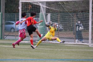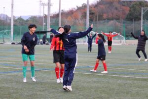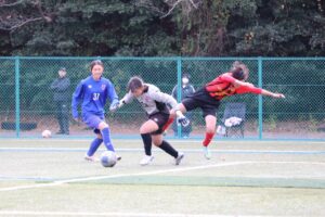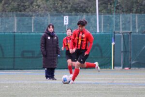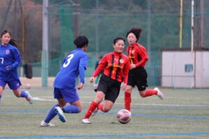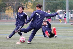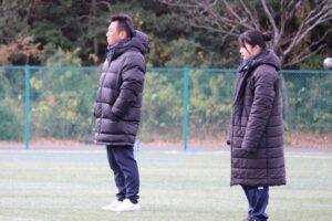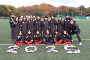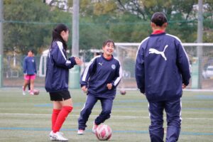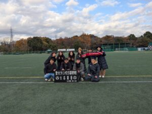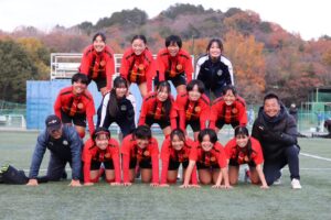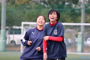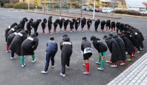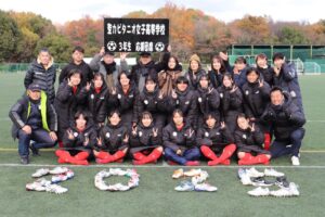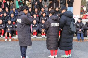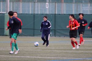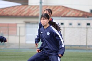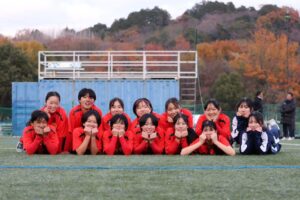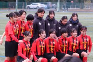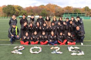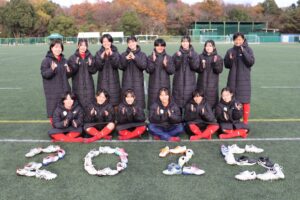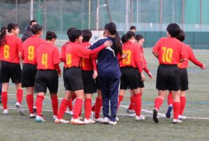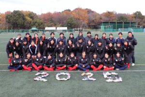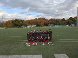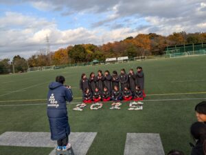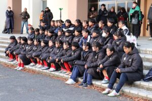 12月13日(土)に名古屋経済大学で、名古屋経済大学と至学館高校とTRMを行った。名古屋経済大学は年明けに東海リーグの入れ替え戦を控えているため、調整に抜かりない。一方、至学館高校はU18女子サッカーリーグからの降格が決まり、本校同様にこの日が3年生の引退試合となった。本校は3年生だけでチームを組み、リラックスムードの中にも真剣に至学館高校と対戦した。試合前には両チームで写真撮影を行い、チームは違えどもサッカー仲間であることを再認識した。最後には1.2年生対3年生で紅白戦を行い、全員参加で楽しい時を過ごし、私もスタッフも保護者もぼひのさんもその雄姿を目に焼き付けた。その後のセレモニーでは、3年生1人ひとりから3年生の仲間や後輩たちにメッセージを伝えた。成長した姿と言葉には大きな成長を感じずにはいられない。