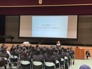 12月18日(木)5・6時間目に1年生を対象に「自分発見ノート」というテーマで、清水美也子先生に講演していただきました。