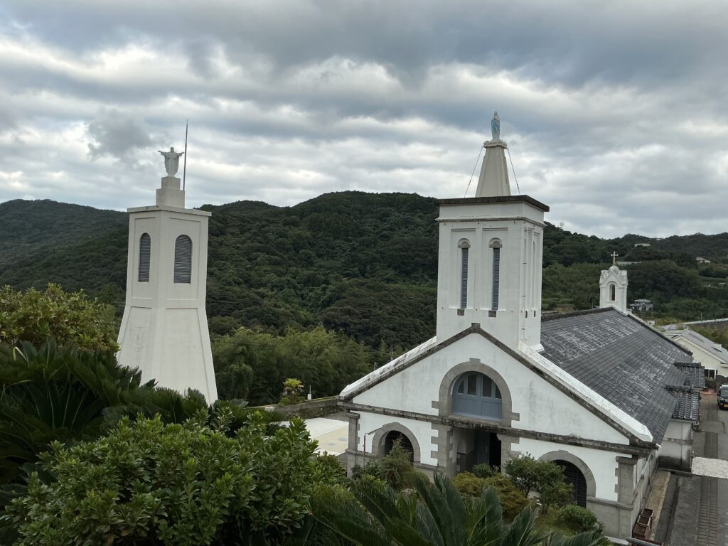 バスで長崎に向かい、最初の目的地である外海地区を訪れた。2018年に世界文化遺産に登録された「長崎と天草地方の潜伏キリシタン関連遺産」の構成資産の一つである、出津(しつ)集落を地元のツアーガイドさんが各クラス毎に付いてくださって見学をした。「長崎市外海歴史民俗資料館」では、この地区の古代からの歴史、暮らし、潜伏キリシタンの信仰などに関する資料が展示されている。「ド・ロ神父記念館」は明治時代、フランスから外海に主任司祭として赴任し、精神面の支えだけでなく、産業を興し、貧しかった人々の生活を向上させるため、生涯を捧げたド・ロ神父の偉業を伝えている。「旧出津救助院」はド・ロ神父が女性の自立支援のために建てた授産・福祉施設である。