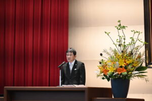 2026年度、入学式が無事執り行われました。今にも雨が降りそうな曇り空。私たちの心は入学式が始まるまでは、雨が降らないで欲しいという思いでいましたが、私たちの想いは天に通じました。式の間は雨が降りましたが、式後は雨がやみホッとしました。それは、私が「式後は雨がやみます」と断言したからです。(笑)